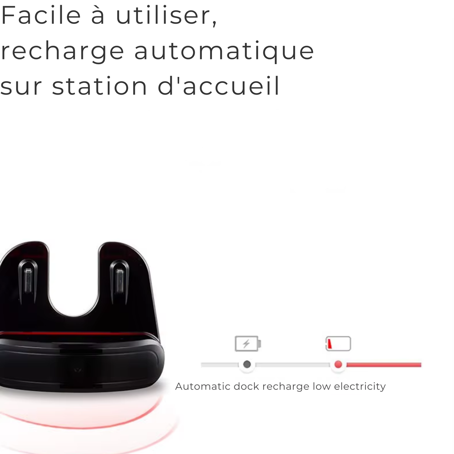 Il retourne automatiquement à sa base quand la batterie est faible, pour être toujours prêt à repartir.